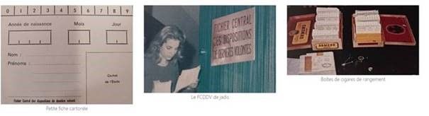 Après avoir examiné de près les modèles de fichiers belge et espagnol, il met au point son propre système : une petite fiche cartonnée pour le classement. Raoul Raymond, secrétaire général du conseil régional, suggère une pince à tiercé pour le traitement et… des boites à cigares pour le rangement, puis Christiane Mouren notaire à Marseille, étudie l’achat d’un fichier rotatif manuel ! Le FCDDV est né.
