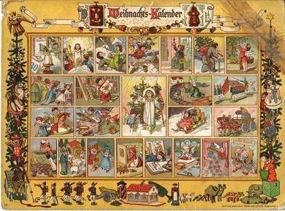 C’est dans la deuxième moitié du XIXe siècle, toujours en Allemagne qu’est créé le calendrier tel que nous le connaissons, avec une case à ouvrir par jour, dévoilant une image toujours religieuse. La plus somptueuse étant bien sûr celle du 24 décembre.